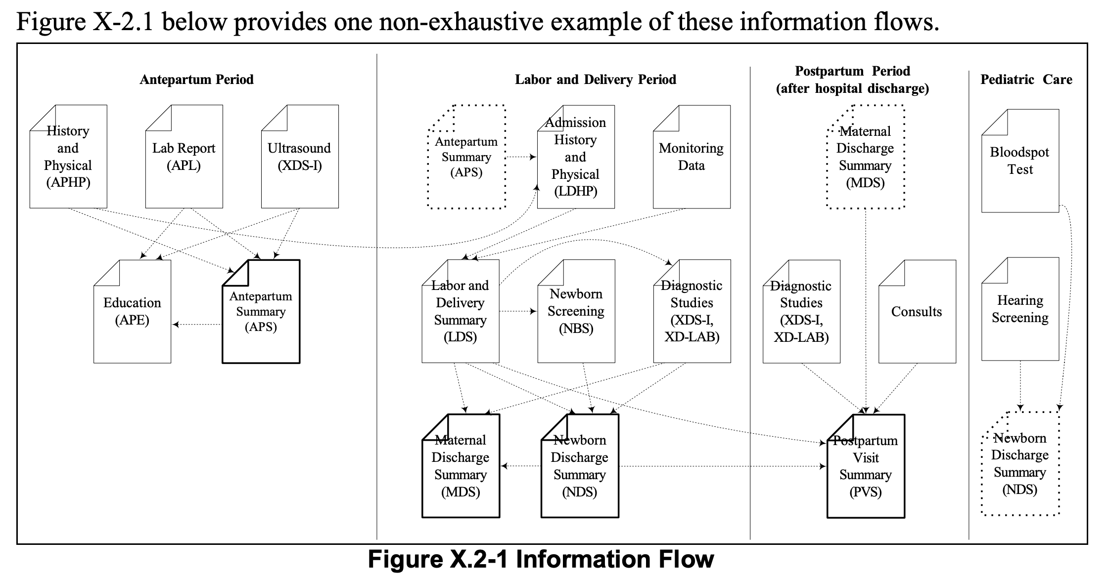 It is not aimed at populating a central database (or EHR) but breakdown of data items would probably help with that. it does suggest solving maternity using a Health Information Exchange (HIE)/Clinical Portal instead.