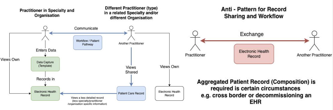 NHS England tends to go for the red box (exchange) and NHS Trusts the blue boxes (workflow and data sharing APIs). The difference is technical but it’s worth bearing in mind COVID 19 Vaccination took the “blue pill” route, it scales.