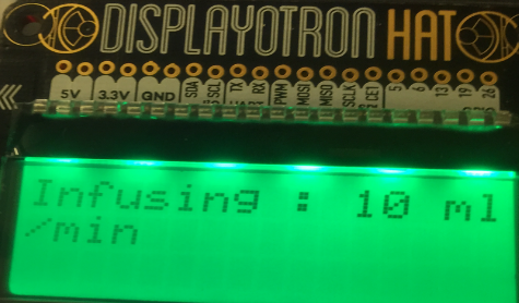 While the Pi can support much more capable displays, including full-HD touchscreens, this display was selected because it was more like some of the more basic displays currently in use on existing infusion pumps. In addition to a 3x16 character dot matrix LCD, it sports